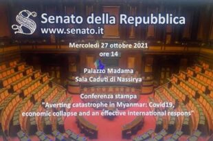 Mercoledì 27 ottobre 2021, nella sala Caduti di Nassirya presso il Senato della Repubblica Italiana, si è svolto l’evento "Evitare la catastrofe in Myanmar: COVID19, crollo economico e una efficace risposta internazionale". L’evento è stato promosso dal Senatore Pier Ferdinando Casini, con la collaborazione dell’Alliance for a Democratic Myanmar.